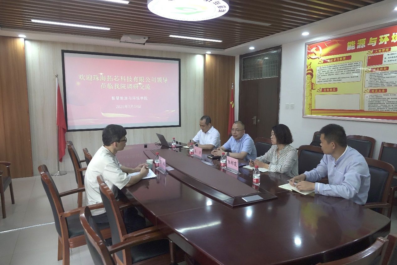 5月14日下午,珠海拓芯科技有限公司项目经理郭玮来公司进行校企合作方面的调研交流,学院经理王方、副经理朱彩霞及建筑环境与能源应用工程系主任李志强、副主任刘献飞参加交流活动。